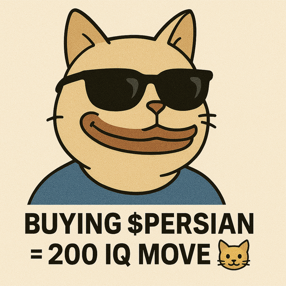 A collection of cartoon cat images promoting $PERSIAN cryptocurrency and related memes. These images feature cats with sunglasses, text, and other elements related to cryptocurrency.